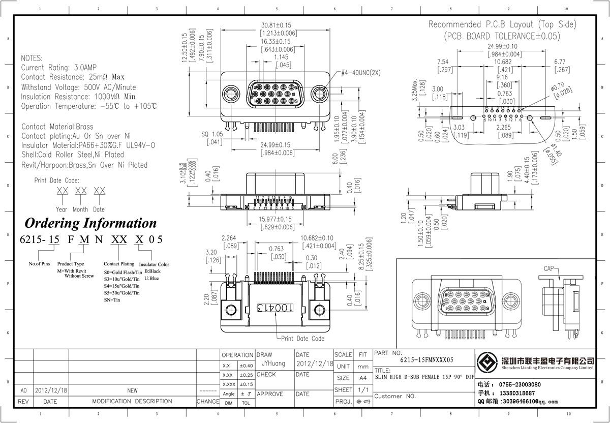 技術(shù)參數(shù):額定電流:3.0amp電流電阻:25mΩ最大絕緣電阻:1000mΩ min 承受電壓:AC 500V /分鐘工作溫度:55﹣℃+ 105℃接觸材料:黃銅觸點(diǎn)電鍍金或錫鎳絕緣體材質(zhì):聚酯(UL94V-0)標(biāo)準(zhǔn):PBT的+ 30%廣發(fā)殼:冷軋輥鋼、鍍鎳黃銅,Revit /魚叉:錫鎳鍍螺絲材質(zhì):黃銅.