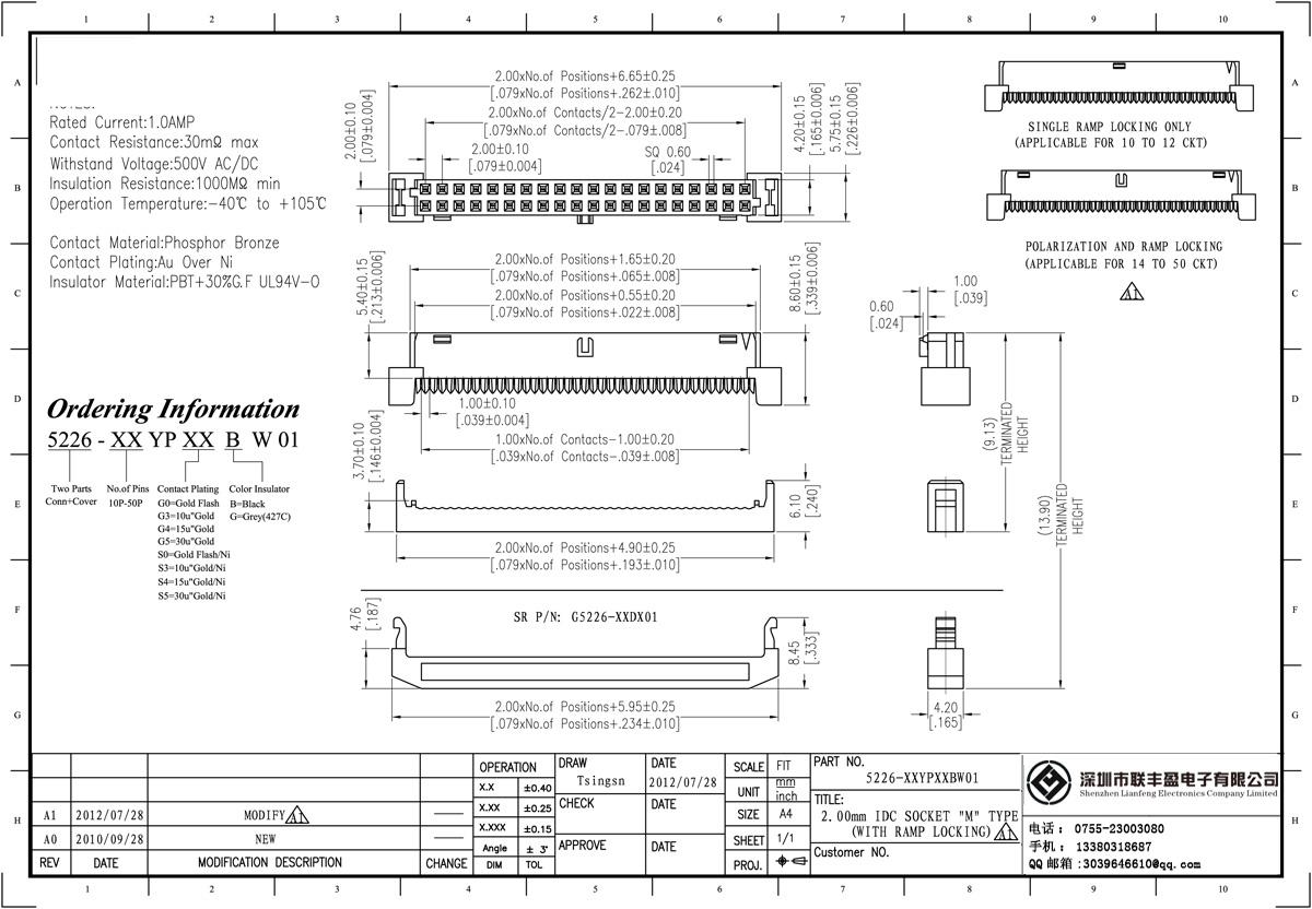 技術(shù)參數(shù):額定電流:1.0amp電流電阻:20mΩ最大絕緣電阻:1000mΩmin耐壓:1000V AC /分鐘工作溫度:40﹣℃+ 105℃接觸材料:磷青銅或黃銅觸點(diǎn)電鍍金/錫鎳絕緣材料:聚酯(UL94V-O)標(biāo)準(zhǔn):PBT的+ 30% GF