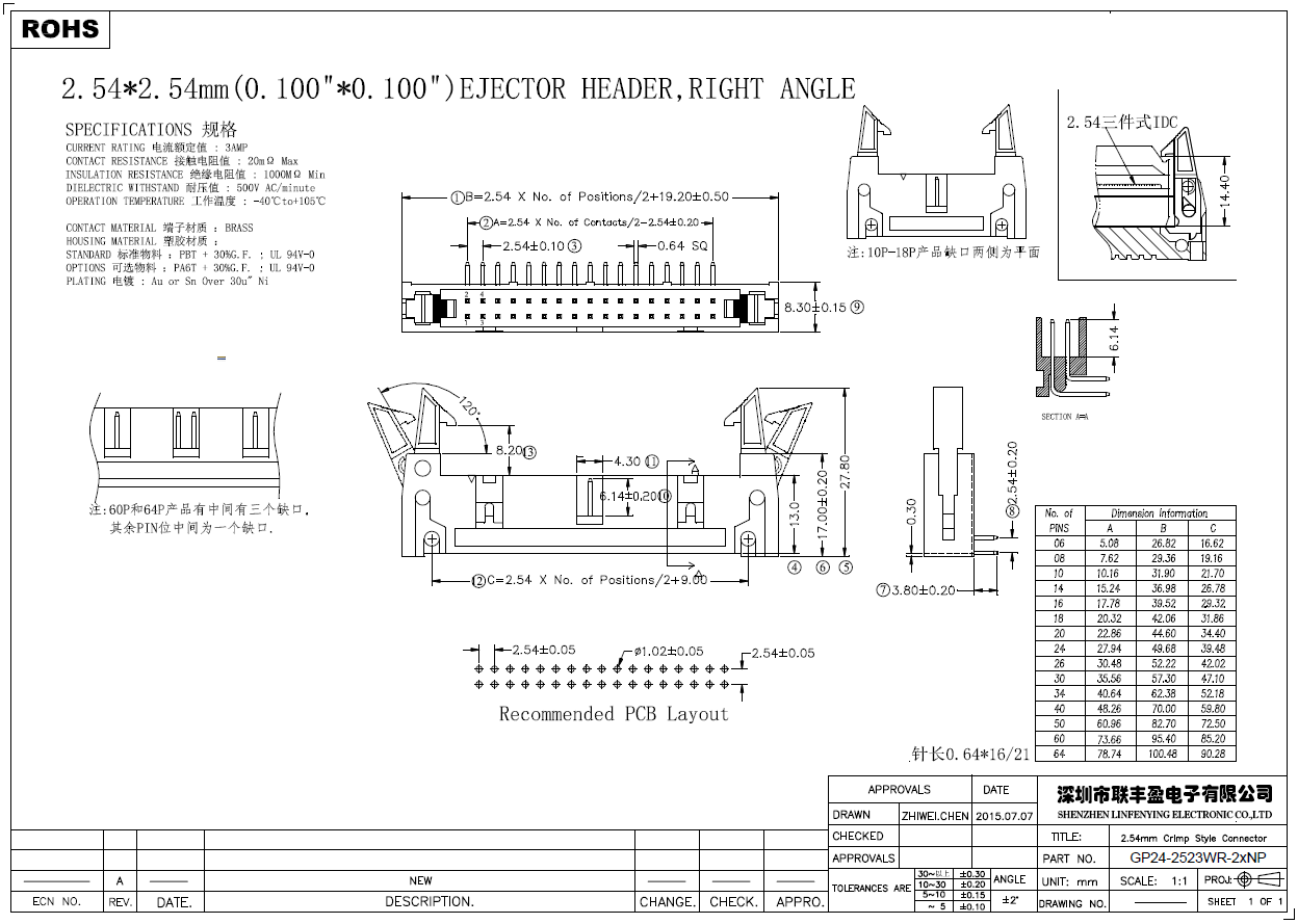 產(chǎn)品簡介品名:牛角規(guī)格:插件/臥式90°間距:2.54mmPIN數(shù):6-64PIN備注:牛角連接器系列