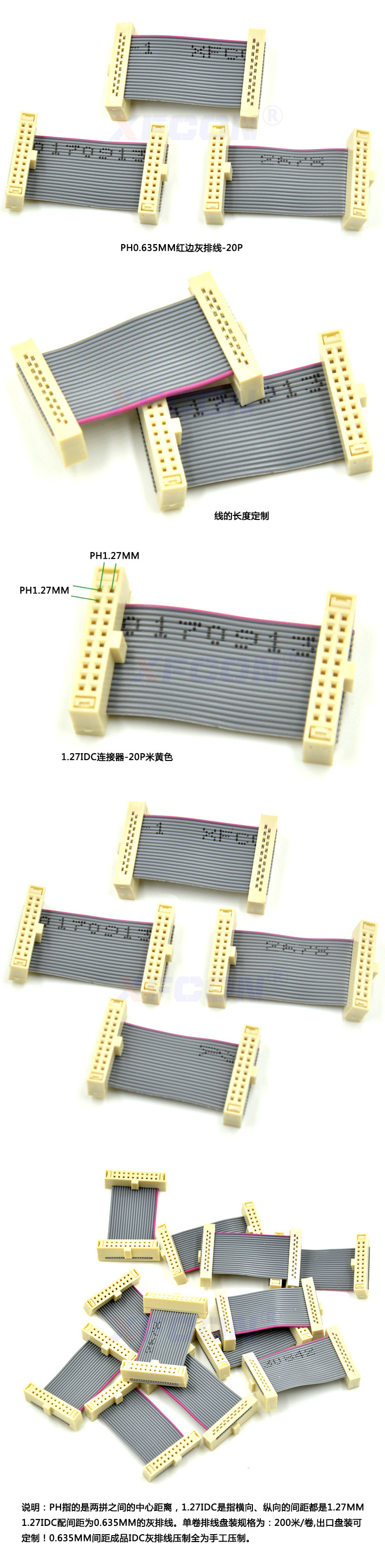 灰排線間距:0.635MM (另有1.0MM 1.27MM 2.0MM 2.54MM)