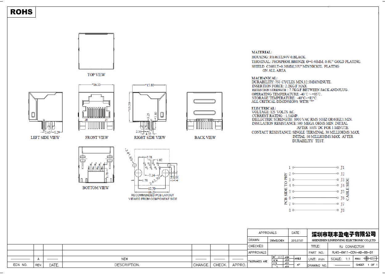 RJ45/RJ11 網(wǎng)絡(luò)連接器系列產(chǎn)品技術(shù)參數(shù)