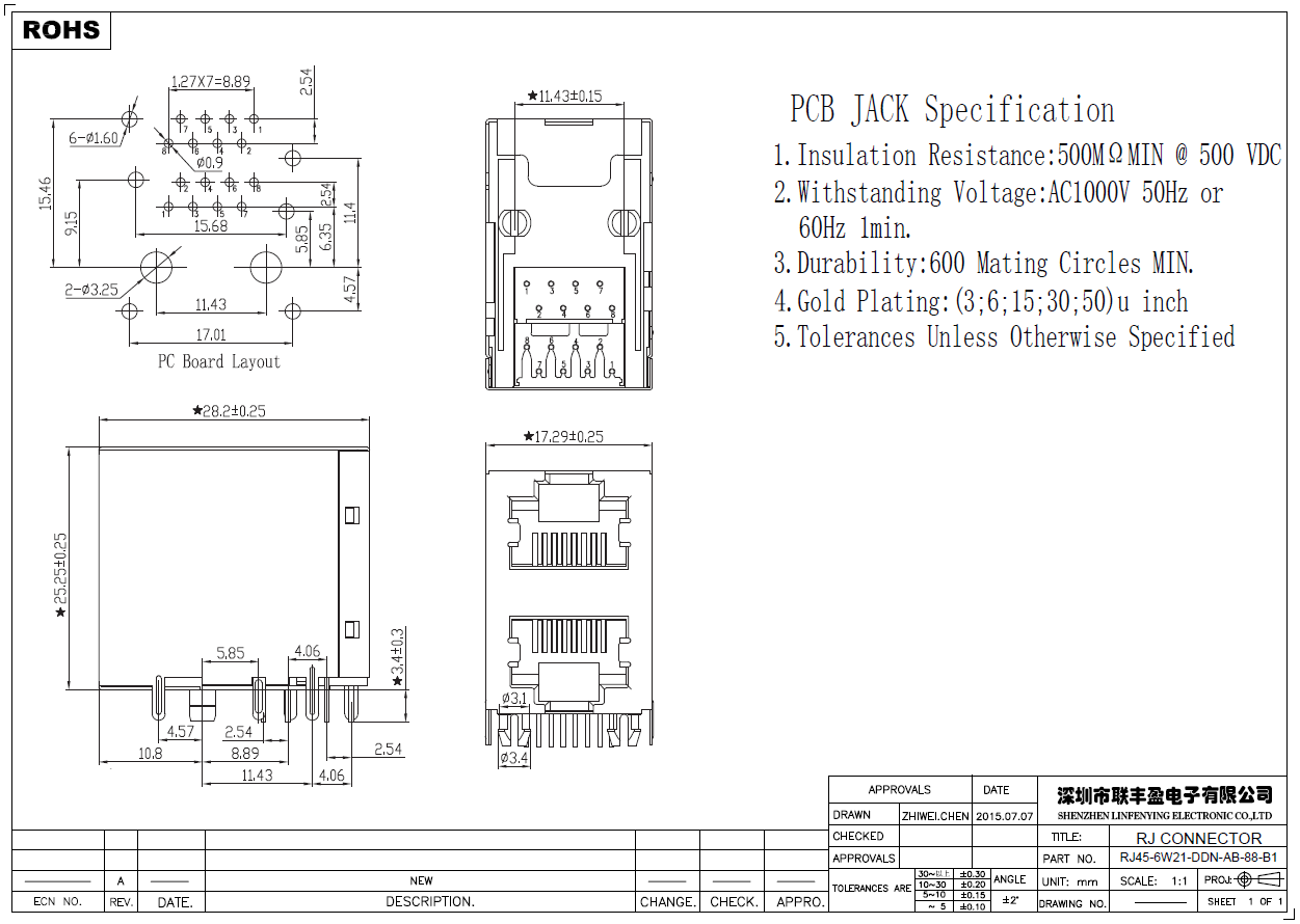 產品簡介品名:RJ45網絡連接器規(guī)格:臥式插件/90°外殼:帶屏蔽LED燈:無-其它顏色可定制塑膠顏色:黑色