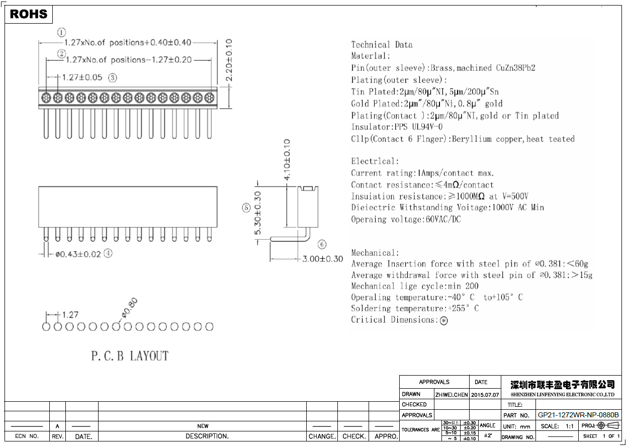 產(chǎn)品簡(jiǎn)介品名:排母規(guī)格:插件/臥式90°間距:1.27mmPIN數(shù):2-40PIN備注:圓孔排母系列